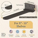 Elevate Your Space – Transform your walls with our premium metal floating shelf brackets, finished in a sleek frosted black coating. Designed to stay completely hidden, these brackets give your shelves a clean, modern floating effect—perfect for kitchens, living rooms, and bathrooms. Their minimalist design blends effortlessly into any décor, adding elegance without distraction. Strength That Lasts – Crafted from durable, high-quality metal, each pair supports up to 300 lbs when properly anchored into wall studs. These heavy-duty brackets deliver unmatched stability for a wide range of shelving styles—from home décor displays to storage in busy areas. Engineered for long-term performance and everyday reliability. Versatile Design – Perfectly sized for 8”–10” shelves, these invisible wall brackets work seamlessly across multiple spaces and purposes. Whether you’re styling open shelves in your kitchen, organizing your garage, or creating modern retail displays, their adaptability makes them a go-to solution for both residential and commercial use. Effortless Installation – Everything you need for a fast and secure setup is included right in the box: Shelf brackets, shelf screws, anchor screws, wall anchors, bubble level, and a drill bit. Designed for easy mounting into wall studs or drywall, ensuring a smooth and stable installation every time—even for first-time DIYers. USA Designed – Proudly engineered by Balin Designs, a Florida-based family business devoted to blending strength and style. We create premium home hardware built to last—because every American home deserves both functionality and beautiful design. Trust in our craftsmanship for reliable, long-term support in every space.