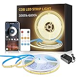 Yeewhale 32.8ft COB LED Strip Lights Warm White Dimmable DC 24V 3000K Flexible LED Tape Light for Bedroom, with Remote and app Control LED Tape Lights,for DIY Home Decoration