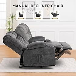 - COMHOMA Manual Recline Chair Set,Fabric Reclining Sofa Chair with Cup Holders, Upholstered Recliner with Side Pockets Suitable for Living Room Furniture (Grey)