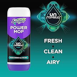 1. SWIFFER POWERMOP REFILLS: This pack includes 2 25.3 fl oz bottles of Swiffer PowerMop Floor Cleaning Solution, Unstopables Fresh Scent, perfect for use with Swiffer PowerMop pads 2. PRE-MIXED SOLUTION: This floor cleaner for mopping fights tough, sticky messes and dries fast - no need to rinse! 3. LONG-LASTING FRESHNESS: Reinvigorate your home and enjoy freshness for hours with Unstopables Fresh Scent, which is bright and vibrant, finished with airy and crisp undertones 4. MOP SMARTER: Mop smarter with Swiffer PowerMop and clean in half the time*! *vs. mop and bucket - includes cleaning and drying time 5. SAFE FOR USE: This floor cleaning solution is safe for use across all hard sealed and finished surfaces - do not use on unfinished, oiled, or waxed wooden boards, non-sealed tiles, or carpeted floors because they may be water sensitive