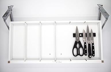 The Drop Block Under Cabinet Spice Rack - Pull down Spice Rack -Safely and neatly store steak knives, utensils, crafts and more (White)