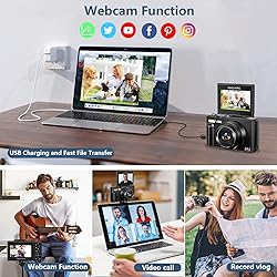 【Autofocus 64MP & UHD 4K Digital Camera】The digital camera can make YouTube 4K videos and take 64 MP UHD pictures. High quality images and high pixel video sensor can capture every memorable moment clearly.4k vlogging camera has three focus modes: auto focus, manual focus and fixed focus, you can set the focus mode according to your needs. It is a perfect photography cameras for beginners 【Wireless WIFI & Webcam/Vlogging Function】The upgraded digital camera for youtube has built-in wireless WIFI function, allowing you to share videos and photos online instantly using your cell phone. The vlog camera can be used as a webcam, making it easy for you to make live streams or video calls on YouTube, Facebook, Twitter or other social media. The USB cable that comes with the package can be used not only for charging but also for transferring 【18X Zoom Cameras for Photography with 180°Flip Screen 】Our 4k travel camera features a 180°IPS flip-up 3-inch IPS screen that makes it easy to take selfies, record and share your life's blog. The small digital camera supports 18x digital zoom and can be easily zoomed in and out while in use by pressing the W/T button. The HD photo camera is also equipped with a high-brightness flash to capture clear images in dark environments.(NOTE:It's a digital zoom not an optical zoom, all digital zooms have an effect on picture quality when zoomed in, the more you zoom in the blurrier it gets.) 【Multifunctional Point and Shoot Digital Cameras】The 4k digital camera for photography is multifunctional in that it has four photo modes(Continuous shooting/Timed shooting/Auto photo mode/Normal photo mode)and four video modes(Time lapse recording/Loop recording/Slow motion recording/Normal video mode), along with a variety of filters. One camera can fulfill all your photography needs 【Perfect Gifts & Service】This 4k digital camera with wifi is the perfect gift for beginners because it is simple to set up and easy to operate and control. Take this camera with you on a trip or for any travel activity/camping/hiking or any sport imaginable! If you have any problems with this flip rechargeable camera, please feel free to contact us and we will get back to you within 24 hours 【Package & Size】The compact digital camera comes with Digital camera*1, 32GB TF card*1, 1150mAh battery*2, Type C Cable*1, Lanyard*1, Camera bag * 1, Manual * 1. The SIZE of the camera is 4.56''(Length) * 2''(Width) * 2.67''(Height)