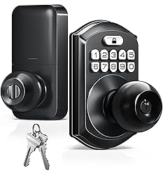 4 Ways to Unlock: This keypad lock with knob supports up to 20 user codes, 2 physical backup keys, and one-time passcodes for temporary access. Passage Mode keeps the door unlocked for continuous entry during activities like parties, cleaning, or moving items. Suitable for rental properties, home entry doors, and office use Auto Lock & One-Touch Locking: Auto-lock is off by default and adjustable from 10–99 seconds to reduce forgotten locks. One-touch locking works by holding any keypad button for 2 seconds. Designed for homes, rentals, and offices for convenient, reliable indoor security One-Time Code & Anti-Peeping Password: The lock allows temporary codes for guests, cleaners, or service personnel that expire automatically after use. Anti-peeping codes let you enter random digits around the real password to prevent onlookers, ensuring secure access for short-term visitors or deliveries Durable Materials & ANSI Certified: This door lock features an aluminum alloy keypad for strength and corrosion resistance, and a stainless steel handle for long-lasting durability. Meeting ANSI Grade 3 standards, it provides reliable daily protection for residential, rental, and office doors, ensuring both safety and everyday usability Interior Door Knob: Locks the door in one second from inside using the knob, providing instant privacy and security for bedrooms, garages, home offices, or hotel rooms. It also helps keep children and pets from leaving unexpectedly, for families and daily home use Easy to Install: The TEEHO digital door knob installs in minutes using one screwdriver, with no drilling required. Designed for standard U.S. doors, it fits wood and metal doors only with 2-1/8" (54 mm)door holes, 2-3/8" or 2-3/4" backset (60/70 mm), and 1-3/8"–2" (35–50 mm) door thickness Long Battery Life: Powered by 4 AA batteries(not included), the lock lasts up to 1 year under normal use. More energy-efficient than Wi-Fi locks, it reduces frequent battery changes. A battery indicator lights red below 15%, ensuring reliable access for homes, rentals, or senior households IP54 Waterproof: This door lock features an IP54-rated design that protects against rain, splashes, and dust during daily use. It maintains stable performance in rainy weather conditions, making it suitable for front doors, side doors, or outdoor entrances. TEEHO offers 2-year warranty and lifetime customer service, including online phone support from Monday to Friday 9 AM to 5 PM PST and 24/7 online email service