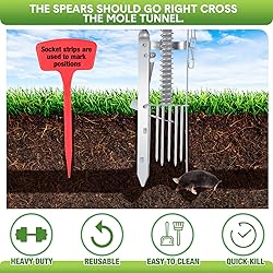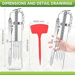 Complete Mole Trapping Set: our package contains 2 mole traps and 2 red signs, providing all your trapping needs; The traps can easily be set up, saving you both time and effort; The accompanying red sign strips function as location markers that allow quick identification and prevent accidental touching by kids or pets; Be prepared for a well defended lawn or farm with this set Ideal Size for Effectiveness: measuring about 14 x 3.4 inches/ 35 x 8.6 cm, our vole traps are specially designed for trapping unwanted moles on your property; The traps are built with a latch lever and an activator plate; Upon detecting the slightest motion, the device engages and the spears are released to capture and kill a passing mole Easy to Use: start by locating active tunnels and flattening them; Then, find the main tunnel and place the trap at the center; After pushing the trap downwards, the spears will be raised upwards; Lastly, lock the trigger latch onto the pan; Please note, these traps are not suitable for sandy soil or dry ground Quality Galvanized Metal: made of galvanized metal, our gopher traps are robust and safe; They present an effective solution to eliminate moles without having to resort to bait Multipurpose Mole Traps for Multiple Locations: perfect for mole extermination in lawns, farms, gardens, and yards, these reusable traps are an excellent solution; Please remember to wear gloves when setting up these traps due to moles' heightened sensitivity to human scent, which could affect their effectiveness