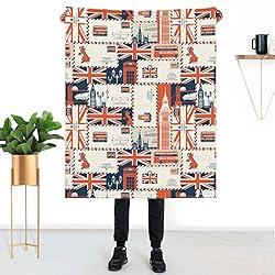 Oplp UK and London Theme Throw Blanket for Bed Sofa Couch Envelopes Symbols Flag Retro Style Fleece Blankets Lightweight Soft Cozy 50"x40"