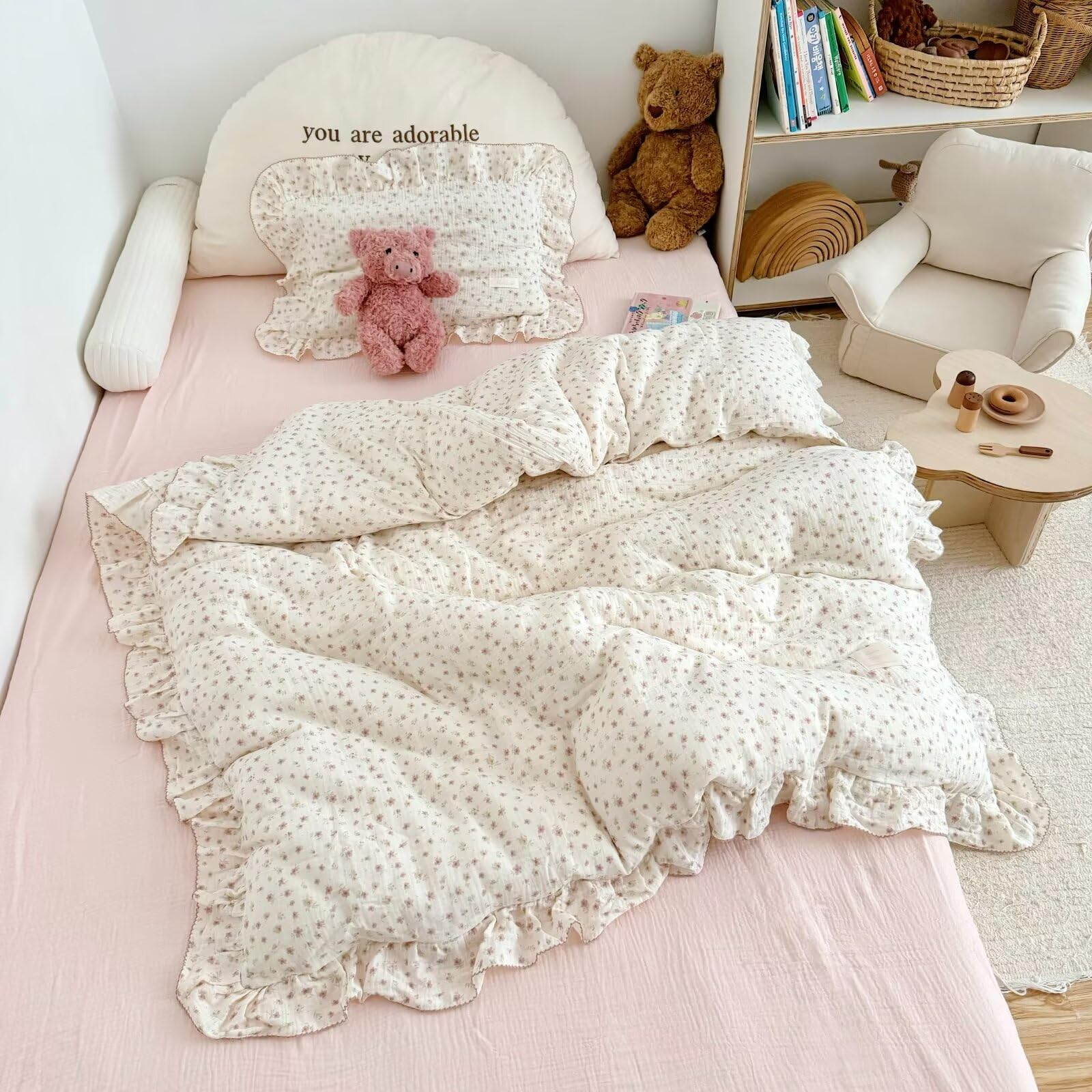 - BuLuTu Cotton Muslin Toddler Kids Pillowcases Floral Print Pillow Covers for Crib/Toddler/Twin/Full/Queen/King BedCrafted with 100% cotton (premium double-layer muslin), our soft pillowcase is designed to provide ultimate comfort and safety for your little one’s sensitive skin. Perfect for cribs, daycare naps, or travel, it combines gentle functionality with adorable designs parents and kids will love. With these cute small pillow cases, your kid's room will be decorated as a warm and comfortable sleeping heaven. Perfect as gifts for baby showers, birthdays, or holidays.Why Choose Our Muslin Cotton Pillowcase? Skin-Friendly:Double-layer gauze cotton children pillowcases, certified by OEKO-TEX , weaving enhances breathability, preventing overheating during sleep. Softness:The gauze fabric becomes softer with every wash, yet retains its shape and color for long-lasting use. Design:Available in multiple playful prints (animals, flowers) to match any nursery theme. The enveloped closure pillow cover keep the pillow securely in place. Toddler pillow case (14x20 Inch) suits for 1-3 years old toddler girls boys, snugly fits crib sized pillows 13"x18"/14"x19", loose fit for toddler pillow 12"x16". Standard pillow case (20x26 Inch) suits for 3-12 years old kids. King size pillow case (26x36 Inch) suits for teens and adults. Convenience: Machine washable in cold water. Tumble dry low or air dry to maintain fabric integrity.【Special Note】 Please understand this is just pillow cover, the pillow insert/filling NOT included. Please allow slight color difference due to various monitors. If you like the sheets/blanket/quilt in the images, please visit BuLuTu Store for the perfect matchings.