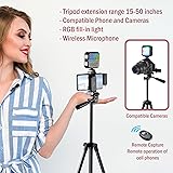 Vlogging Kit for iPhone,YouTube Starter Kit Beginner Content Creator Essentials Kit for Android with Tripod/Wireless Microphone/RGB Fill-in Light/Remote