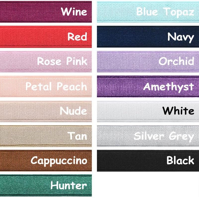 The extensive application of elastic bands in sewing has made people's lives more convenient, especially for clothing. They are widely used in purchasing products such as leggings, waistbands, bicycle shorts, shirt plackets, ski pants, underwear, bras, and clothing cuffs. Additionally, folded elastic bands and decorative elastic bands are suitable for DIY crafts, such as making wristbands, armbands, elastic hair ties, and colorful elastic bands. They are also used in products like wigs, knee pads, and over-the-knee boots. Product details: Material: Polyester fiber Size: 3/8 inch X 3/5/12/50/100 yards Multiple sizes are available Color: Assorted colors Quantity: 1 set X sewing elastic bands Friendly reminder: Be sure to use sharp scissors to cut the silicone elastic thread spool to prevent wear. After use, roll up the remaining silicone elastic band for better storage and protection. If the cut end becomes frayed or easily unravels, secure an additional stitch at the end. After use, roll up the remaining elastic band into a circle for good protection.