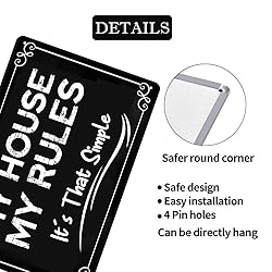 Generic My House My Rules It's That Simple Tin Metal Wall Decoration House Rules Metal Sign Wall Art Sign for Garage Man Cave Backyard Decor 8x12 Inch