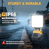 COMPATIBLE WITH DEWALT BATTERY - MtiolHig 112W 11200lumen cordless led work light is compatible with dewalt 20v battery, such As for DCB200 DCB201 DCB203 DCB204 DCB205 DCB206 Etc. You can get rid of the entanglement and bondage of the rope If you use this cordless hanging light on your workshop, garage, indoor and outdoor SAFETY DESIGN -The USB codlress construction LED Work light is designed with one 2 gears switch, which can control the high and low brightness separately, to meet the different scenes. This battery powered shop light has a built-in low-voltage protection panel to protect your battery from damage.It will automatically cut off the power when the voltage drops below 14.5V ROTATABLE & CHARGING - The cordless outdoor lights has 140° rotatable design. It can adapt to different work scenarios and lighting needs in different directions. It also has a USB-A & USB-C charging port, which can be used as a power bank to charge your mobile phone, headsets, tablets, speakers or other devices while working. It's a great led work light option for 20v battery tool bag or box MULTIPLE USAGE SCENARIOS - The 112W 11200 Lumens cordless underhood work light can be use in a variety of settings, such as for mechanics, your store, barn, RV, car under hood repairing, living room, yard, new home decoration, or when you're camping out and having a barbecue, fishing or any other dark environment BEST GIFTS CHOICE - This Is a Cost-Effective LED Work Light. At the Same Time, It Is Also a Good Christmas, Halloween, New Year or Birthday, Anniversary Gifts for Men, Workers, Craftsmen, Husbands, Boyfriends, Carpenters and so On.It would be a great complement for tools 20v TIPS: When you do not using the cordless led work light, please remove the cordless tool light from the battery