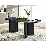 - Informed by art deco design, this oval dining table makes a lasting impression in a simply stunning way. Its magnificent curved silhouette and architectural pedestal are enhanced with a rich layered black finish. It’s the contemporary statement piece you’ve been seeking to elevate late-night dinners and full-on family feasts.