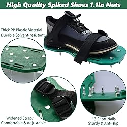 PACKAGE: 1 x 9 inch spike roller with handle + 1 pair of spiked shoes. The roller features 0.5"/13mm teeth height, 9 inch in width. Necessary tools for floor self leveling compound, epoxy floor, concrete floor paint construction, save your time and works effectively FUNCTION: Spiked roller can be used to swiftly eliminates any bubbles when painting and help smooth out edges. The epoxy resin nail shoes will return and stick back will not leave a trace in the self-flowing flat paint construction SPIKED SHOES: Made of polypropylen, durable and solvent-resistant. The bottom of the epoxy spike shoe is 11.8*5.1 inches, features a snap-lock buckle system and 13 sharp-tip 3/4 inch spikes per shoe HIGH QUALITY MATERIALS: The concrete screed roller is made of polyester, which is eco-friendly and easy to clean. The roller handle is made of stainless steel and plastic, corrosion-resistant, sturdy and easy to grip EASY TO INSTALL: The handle desigened with a round hole, it can be installed with fixing nails, can use a same inside diameter stainless steel telescopic rod or an extended cylindrical wood to match