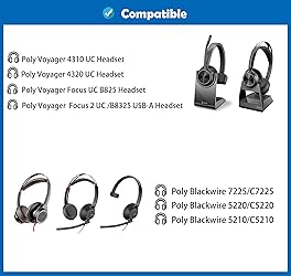 - DowiTech Earpads Cushion Replacement Compatible with Poly Voyager 4310 UC/Voyager 4320 UC/Voyager Focus UC B825/B835/Voyager Focus 2 UC USB-A/Plantronics Poly Blackwire 5220/5210/5200/7225 Headsets Ear pads Cover with Soft Protein Leather and Memory Foam
