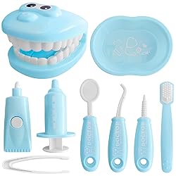 COMPLETE DENTIST PLAY SET: This comprehensive 9-piece set includes a teeth model, toothbrush, dental mirror, syringe, toothpaste, tray, and various dental tools. It provides everything your child needs for a realistic dentist role-play experience, encouraging a sense of responsibility and care for personal health. EDUCATIONAL AND FUN: Designed to teach kids about dental hygiene in an engaging and interactive way, this set helps children understand the importance of taking care of their teeth while having fun. Role-playing as a dentist can help reduce fears of visiting the dentist and make dental check-ups more enjoyable. SAFE AND LONG-LASTING: Crafted from high-quality, non-toxic plastic, this dental toy set ensures safe and extended playtime for children aged 3 and up. The sturdy construction withstands rough play, making it a reliable addition to your child’s toy collection. INTERACTIVE LEARNING TOYS: Encourages imaginative play that improves fine motor skills and promotes social interaction among children. Playing with this set helps children develop hand-eye coordination as they handle the various tools, enhancing their skills and creativity. Ideal for kindergarten teachers to educate children about proper brushing techniques. PERFECT GIFT IDEA: Ideal for birthdays, holidays, or as an everyday gift, this dental play set is perfect for boys and girls who love pretend play and learning new things. It makes a thoughtful and cherished present that provides hours of educational fun, sparking curiosity and interest in dental health.