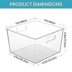- Vtopmart 4 Pack Extra Large Clear Plastic Storage Bins,11x11 Cube Acrylic Organizer Square Containers with Handle for Pantry,Closet,LaundryRoom,Kitchen,Bathroom,UnderSink Organization
