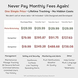 Wired GPS Tracker for Vehicles, No Subscription with Real-Time Location, Easy Install, Speeding Monitoring, Route History, Geofence, for Fleets & Families, USA, Moto Watchdog