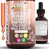 para Defend Wormwood Black Walnut Cleanse for Humans Drops Liquid Soursop Garlic Pumpkin Seed PAU D'Arco Oil of Oregano Turmeric Berberine Neem Extract Hull Bark Tincture by Clean Nutra