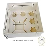 Sturdy, Warp-Resistant Cupcake Container: Crafted from robust materials, this cupcake box resists warping, ensuring your cakes and cupcakes remain pristine during transport. Ideal for safe and professional delivery. Display Your Baking Creations with Elegance: Our Cake and Cupcake Bento Boxes showcase your baked goods beautifully, making them perfect for events, parties, and special occasions. cupcake boxes Bento cake