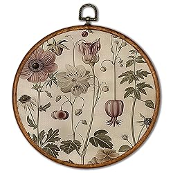 KSDUT Botanical Floral Wall Decor Art - Boho Natural Vintage Flowers Wall Art Canvas Frame Hanging Prints, Mid Century Modern Round Wall Art Decor for Home Farmhouse Decorations 10"x10"