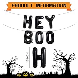 - 16 Inch Black Hey Boo Foil Banner Balloons Halloween Party Balloons🎉🎉🎉🎉🎉🎉🎉🎉🎉🎉🎉🎉🎉🎉🎉🎉🎉🎉🎉🎉PRODUCT DETAILS:Auto-Seal Balloon DesignSIZE:16" for each letter balloons.1 pcs Black Hey Boo BalloonsMATERIAL:Good quality Aluminum Foil balloonsA GREAT HALLOWEEN PARTY DECORATIONMystical, shiny, and the great addition to Halloween party.These Happy Halloween balloons will shine both indoors and out.TopNotch Service:️TOUIFUL is committed to making you 100% satisfied, we offer:If you have any questions about your purchase, please let us know and we will do our best to help you.100% quality assurance.30 days are not satisfied with the refund.Add TOUIFUL decorations to your wish list to learn about our latest products and promotions.🎉We wish you spend a happy and memorable Halloween party!!!🎉
