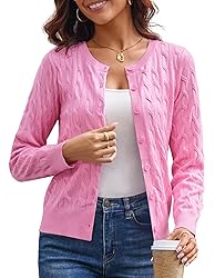【Soft Knit Material】Made from soft knitted fabric, lightweight and skin-friendly feeling, well-made, good stretchy, the spring fashion cardigan for women is a good choice for layering in the beautiful seasons 【cable knit Cardigan】Trendy spring outfits for women 2026, featuring delicate cable stitch details and neat rib trims, combined with classic and fashion design, crew neck, chic cropped length, regualr fit, good stretchy, a good transitional staple in your wardrobe 【Easy to Match】This cropped cardigan is elegant and versatile, can be buttoned or unbuttoned to wear over other tops and dresses, adding warmth when needed, such as in spring, summer nights, fall or air-conditioned rooms, a perfect year-round layer for a feel of high-quality and all day comfort 【Versatile Occasions】Your new go-to sweaters over the year especially in transitional seasons, great for daily life, casual, work, office, business, school, travel, vacation, going-out, street wear, church and many other indoor and outdoor occasions. If you are looking for a versatile and fashion cardigan in the beautiful seasons, this sweater would be a good staple in your wardrobe 【Warm Tips】 Size: S(US 4-6)/M(US 8-10)/L(US 12-14)/XL(US 16)/2XL(US 18). This cropped cardigan has a slim fit, please refer to our size chart before ordering. Hand wash with cold water or machine wash in a laundry bag recommended.