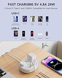 【US to Brazil Plug Adapter】 Compatible in most overseas countries such as Brazil. Ideal for traveler, business and study abroad use in airports, hotels and dorm room. 【7 in 1 Brazil Outlet Adapter】The brazil plug adapter accepts the standard N American 2 or 3 prong plug, max capacity up to 2500 watt (max 250 Volt, 10 A); Compatible with cellphone, laptop, tablet, earphone or cameras without a variety of plug adapters,keep your desktop organized. 【Ideal for Shared Spaces】Never Hunt for an Outlet Again. Our travel adapter with its long power cord lets you set up in a convenient spot and power multiple devices for you and your travel companions. Stay productive or entertained from across the room. 【Brazil Power Strip with USB C Ports】Compare with other 15W power strips, the brazil extension cord provice 2 usb-c for Apple devices, each can charge up to 5V/2.4A Max, all usb ports output is 5V/4.8A, 24W max. Brazil charger adapter with smart charging technology, it can automatically detect your connected devices and can achieve faster charging efficiency, which would charge your devices WITHOUT a variety of adapters. The Type-C port doesn't support Macbook Pro or any other laptops which needs 14~22V ch. 【Not a Voltage Converter】 ❌ Only changes plug shape. DOES NOT convert voltage. Check your device voltage (110V-240V) before use.