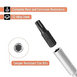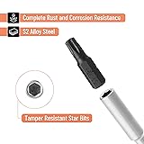 - Bates tamper proof torx bit set includes 14 high-quality bits in sizes T4 to T40, perfect for a variety of tasks that require precision and security.Each bit is crafted from durable, corrosion-resistant material to ensure long-lasting performance and reliability in tough jobs.The set includes a 1/4" magnetic bit driver, making it easy to change bits quickly while providing a secure fit for accurate, controlled use.Ideal for working with tamper-proof screws in automotive, electronics, and machinery repairs, this set covers a broad range of common applications.The compact design allows for easy storage and portability, ensuring you have the right tools when and where you need them. Perfect for professionals and DIY enthusiasts alike.
