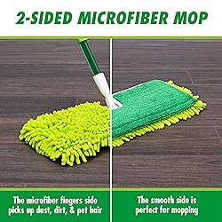 - The Libman 18" 2-Sided Microfiber Dust Mop – the ultimate answer to your hard surface floor cleaning challenges! Say goodbye to the hassle of keeping your hardwood floors spotless, because this handy tool has got you covered. This versatile tool is not just a mop; it's your all-in-one cleaning companion. From dusting to sweeping and mopping up spills, it handles every task with ease. Its flat microfiber side tackles spills efficiently, while the microfiber fingers on the other side ensure no dust or debris gets left behind. What really sets this mop apart is its 360-degree swivel head. With it, you can effortlessly maneuver around furniture and into tight spaces, ensuring that every nook and cranny gets the attention it deserves. Once you start using the Libman 2-Sided Microfiber Dust Mop, you'll wonder how you ever managed without it. Make floor cleaning a breeze today!