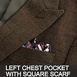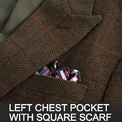 Design: Long sleeve, Peak lapel, Two button closure, Open left chest pocket with printed square scarf, Three patch pockets, With inner chest pockets, full lining. You should remove the stitches to open the pockets before wearing your new suit jacket Herringbone Tweed: The mens tweed blazer is herringbone fabric, This presents a diagonal herringbone pattern, Which looks like a zigzag. The houndstooth pattern is classic and stylish Match: The wool blend blazer jacket is a timeless look. It's great with a basic T-shirt, jeans, casual slacks for a casual vintage look, or with a dress shirt, suit pants and leather shoes for business and formal look. An essential tweed blazer for men's wardrobe Occasions: Wool blend tweed blazer sports coats are suitable from formal to casual occasions. Perfect for office work, wedding, concert, ceremony, anniversary, meeting, business or social gathering like parties, dating, clubs, proms and so on Size: Please refer to the amazon size chart we provide before you place an order