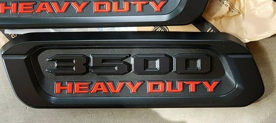 - 2pack OEM 3500 HEAVY DUTY Emblems Left Right Side Badges Hood 3D ABS Compatible with fits 3500 (Black Red)