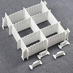 - Description: Name: Drawer partition fixing clip Material: Plastic Color: White The buckle of the partition accessory is made of high-quality PP plastic, which is durable and not easily deformed. The buckle is suitable for use with partitions with a thickness of approximately 2.5mm/0.1in. The installation of accessories is simple and convenient, 1. Fixed clip 10pcs: makes the partition more secure as a whole; 2. Three way buckle 2pcs : can be connected on three sides; 3. Cross buckle 4pcs : can fix the cross position of the partition to reduce shaking; 4. Splicing buckle 2pcs : can extend the grid. The connection buckle accessories at different positions ensure the stability and firmness of the grid connection. The drawer partition clip is widely used for fixing drawer partitions in living rooms, study rooms, bathrooms, kitchens, offices, hotels, lingerie stores, jewelry stores, stationery stores, and other places. Package Include: 22 pcs drawer partition fixing clip