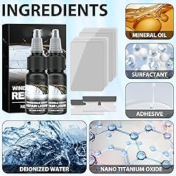 【Cracks Gone Glass Repair Kit】Our auto glass nano repair fluid kit offers swift curing and exceptional repair results with its efficient and durable formula. With no need for complicated tools, the repair process is simple and efficient 【Glass Repair Fluid】This fluid repairs windshield chips, cracks and scratches without having to replace the windshield. Its long-lasting formula resists water and other environmental factors 【Safe and Durable】Use our windshield repair kit to eliminate worries about extreme temperatures. It can easily withstand harsh winters, hot summers and the worst weather conditions, ensuring that your windshield always remains clear 【Windshield Repair for Chips and Cracks】Our cracks gone glass repair kit is compatible with all types of laminated windscreen chips and cracks, including bulls-eye, half-moon cracks, loopholes, cobwebs, star-shaped damage, long line cracks, and more 【Cracks Gone Glass Repair Kit】 Car glass nano repair fluid set cures quickly and has good repair effect. Long-lasting, and stop spreading of car glass chips and cracks, restoring windshields to near new condition, and it can better protect the glass