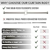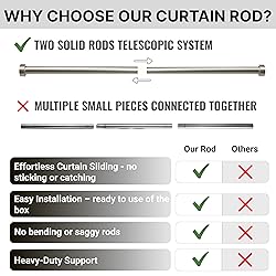 OVER THE BLINDS INSTALLATION – package includes 3 extra long brackets which offer 5 inches of extension to easily accommodate installed blinds or long windowsills, providing maximum flexibility for the silver curtain rod. HEAVY DUTY RODS AND BRACKETS – our 84 inch curtain rod comes with 3 strong aluminum alloy brackets including middle support bracket. Along with high quality telescopic rods the system can handle heavy and long curtains. Say goodbye to bending or saggy rods! EFFORTLESS CURTAIN SLIDING - the seamless solid design of two telescopic parts of our adjustable curtain rod ensures your curtains slide smoothly—no sticking or catching on joints, regardless of the curtain type. TWO INSTALLATION KITS INCLUDED - Install this extra long curtain rod on any type of wall, whether it’s drywall, concrete, or brick. All necessary installation accessories are provided, including drywall anchors, and concrete/brick anchors. HI QUALITY FINISHING – Premium finishing of the brushed nickel curtain rod is universal, looks great and fits any interior while also providing great protection for the curtain holder.