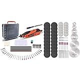 ✅VERSATILE ROTARY TOOL: Goxawee rotary tool is the great choice for all kinds of small home projects or DIY craft. This comprehensive rotary tool kit comes with 181 rotary tool accessories, such as cutting discs, sanding drums , bits, which can provides everything that you need to get started with sanding, polishing, cutting, engraving, and more. You can also use this rotary tool on metal, ceramic, stone, glass, plastic, wood etc! ✅STEPLESS SPEED CHANGING: The power rotary tool has stepless speed setting from 8,000-35,000 RPM, which allows you to set and adjust the speed flexibly according to the work contents and the type of materials used. Meanwhile, the 150W motor provides plenty of rotating power and the vent hole design can effectively dissipate the heat of the motor to extend its service life. ✅ 3 ATTACHMENTS SUPPORT: This rotary tool kit comes with a flex shaft to help you easily reach hard-to-reach pipes, interfaces, corners; the shield provides perfect protection when you conduct cutting work; the universal collet accepts all rotary tool accessories with a shank size is 1/8’’. ✅CONVENIENT OPERATIONS: The hook helps to keep the rotary tool close to you when on a ladder or where you need hands free. The length of the cord is enough to allow you to easily work around objects. Our high performance rotary tool kit can efficiently tackling cutting, grinding, and sharpening tasks around the house, as well as cleaning, engraving for crafters. ✅ GREAT GIFT FOR FRIENDS: Our electric motor rotary multiuse-tool set has a compact and lightweight design, easy to use. Moreover, comes with a carrying case and an accessory case keep everything organized and is easy to pack into a cupboard or toolkit for storage. You can use it to make some special Mother‘s Day, Father’s Day, Birthday gift for family and friends.