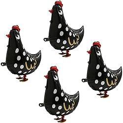 - Hokilands Air Walking Chicken Balloons Farm Animal Party Supplies create one new walk animal balloon for kids, boys, girls and all ages. What You Get 4 * 4D walking animal chicken balloons (chick foil mylar balloon), black color, uninflated size is around 21'' ( 53 cm ) width * 21'' (53 cm) width (it is around 21'' when inflated, see picture for size). 1 * roll of ribbon, size is 32.8 ft (10 meters), need cut ribbon size by self. Notice Our Easter Chicken Balloon Air Walkers Farm Animal Balloon does not include the pump & straw. Our Easter Chicken Balloon Air Walkers Farm Animal Balloon is uninflated upon arrival. CANNOT FLOAT. CAN WALK OR STAND IF FILLED WITH HELIUM, NO SUPPORT IF FILLED WITH AIR. Do not over-inflate to prevent pop, 80%-90% enough, avoid heat sources, pointed objects and excessive friction. How to use it Can walk and be played with on a leash or self standing (filled with helium). Or paste on wall / backdrop or put it on desk / chair . Why Hokilands We stand behind all of our products. If you’re not 100% COMPLETELY SATISFIED, just send us an email, and we promise to make it right! Simply click Add to Cart button now to get your walking chicken balloons farm animal chick party supplies!!! Simply click Add to Cart button now to make this perfect gift for kids, boys, girls, family, friends, teens, college students, for any event!!! Take one Hokilands walk chicken balloons air walkers balloons, enjoy endless fun from party & any events, let it come more alive.