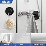 Suction Cup Hooks for Bathroom Kitchen, 2 Pack Stainless Steel Suction Hooks for Shower No Drilling Damage Free Towel Hook Holders Reusable Removable for Hanging Towels, Loofah, Robe, Coat(Black)