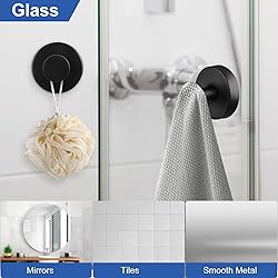 【Easy Installation】After cleaning and drying the area to be pasted, just tear off the suction cup protective film, press the suction cup hook against the wall, press hard to expel the air, and then tighten the knob clockwise. No drilling, no tools such as screws, no more unsightly holes on the wall. 【Removable and Reusable】Unlock the suction cup by turning it counterclockwise, and then remove the suction cup hook from the surface without leaving any marks or sticky residue. If necessary, clean the suction cup adsorption layer and let it air dry before reinstalling and reusing. 【Stainless Steel Material】The shower suction hooks is made of stainless steel material, which is waterproof and suitable even in humid places such as bathrooms and kitchens. It is very suitable for hanging towels, coats, loofahs, mesh sponges, body brushes, robes, jackets, etc. 【Firm Adsorption】There is a traceless composite glue on the bottom of the suction towel hook, which is highly sealed, vacuum locked, and has strong adsorption. The suction cup has a maximum load-bearing capacity of 15LB and can be firmly and stably adsorbed for a long time. 【Widely Used】The vacuum suction cup hook can be firmly adsorbed on smooth and non-porous surfaces such as shower glass doors, mirrors, glossy tiles, smooth plastic surfaces, windows, stainless steel, quartz, laminate, etc. Suitable for bathrooms, kitchens, living rooms, bedrooms, offices, etc. Note: Not suitable for dusty and uneven surfaces such as painted walls, wallpaper, logs, etc.