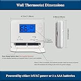 High Compatibility: Forced air (gas, oil or electric), Electric furnace, Hot water steam or gravity radiant heat, Heat only systems, Heat pump w/o auxiliary or emergency heat, Millivolt, Gas fireplaces (24V), Floor or wall furnaces, Cool only systems.(TIP: Before purchasing, check to see if this thermostat is compatible with your system.) Not Compatible: Heat pump with auxiliary or emergency heat, Dual fuel/hybrid heating, Electric baseboard heat (110-240 volts), Line voltage, Convectors, Radiant-ceiling heat, Mini split systems and 12V RV systems. Easy to Install and Use: Large terminal blocks with universal sub-base, can be installed within 30 minutes, clear, easy-to-read backlight LCD display and easy controls make for a user-friendly experience. Simple but Powerful Control: Easy-access front-load battery compartment, adjustable temperature differential (swing) for energy optimization and maximum system life, Support temperature display calibration, Convert °C/°F units, compressor delay protection (selectable on or off). Dual Power Supply: Can be powered by 24VAC power or 2 AAA batteries, No common wire (C-wire) required on most systems (only required on heat only and cool only systems).