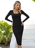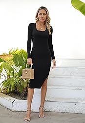 Quality Material: The Valiamcep square neck midi dresses for women with dense ribbed material design, looks like cotton. Soft and comfortable fabric, Good elasticity. which can hugs your figure perfectly and the bodycon cut creates a sexy silhouette, fits the body curve. DESIGNS: This Fall dress is square neckline, solid color, long sleeve, slim fit, side slit, sexy, casual, midi dress, ribbed knit, fitted. Hugs your curves, Midi length for a very flattering fit, These details cut a good figure for you on many occasions. MATCHING: Sexy split show long legs, form fitting and flattering dress can be dressed up and down easily. If you want a cool party look, choose trendy leather jackets and boots. If you like a comfortable and casual appearance, you can pair it with white sneakers or flat sandals. Occasions: Sexy and casual style. The split midi dress for fall and winter, Suitable for most occasions, Whether it is daily wear, going out, night out, club, party, wedding guest, cocktail, date or vacation etc, It's a nice choice, help you get tons of compliments. Clothing Care: Hand Wash with Cold Water/Hang or Line Dry/No Bleach/No Dry Clean.
