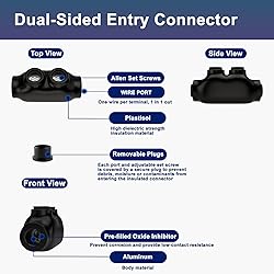 Pre-Insulated Design: Made with a durable plastisol insulation that’s resistant to UV, moisture, abrasion, and chemicals, ensuring longevity and safety Ease of Installation: Installs quickly with a hex key and does not require additional taping or insulation covers Corrosion Protection: Comes pre-filled with oxide inhibitor gel to reduce corrosion and enhance conductivity over time Flexible Compatibility: Suitable for both copper and aluminum wires NEC Compliance: Complies with NEC standards for line-side applications, providing a safe connection for service equipment High Temperature and Cold Ratings: Functions effectively from -45°C to high operational temperatures, making it versatile across climates Ergonomic Build: Rounded, smooth exterior makes handling easy and comfortable