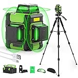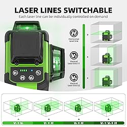 [3*360 Optional Laser Lines] Huepar 360 laser levels have one 360 horizontal beam and two 360 vertical beams can be easily projected to various locations in the room from the top of the laser level. The "H", "V1", and "V2" laser line buttons on the control panel respectively control one laser line. You can easily switch to any laser you want. It is laser Class 2 (IEC/EN60825-1/2014), <1mW. [Additional Laser Level Tripod and Magnetic Bracket] The 1/4”-20 thread at the bottom of the laser level is suitable for the high-quality tripod and 360 magnetic bracket included in the set, as well as other standard tripods and brackets. The sturdy and versatile tripod for laser level included in the set can extend from 17” to 50 in height, helping you adjust the position and height of the laser line level. The magnetic bracket included in the set can rotate 360 degrees and firmly adhere to the metal surface. [Self-Leveling & Manual Mode] For Self-Leveling mode: unlock the pendulum, the Huepar 360 self leveling laser level will project vertical or horizontal laser lines when the tilt angle is less than 3°, and the laser will continue to flash when it exceeds 3°. The accuracy is ±1/9" at 33 feet. Lock the pendulum and switch to manual mode, and the laser level will project a straight line to meet your alignment needs at different angles. [Pulse Mode] Pulse mode extends the working distance of the laser level from 98 feet to 196 feet. In pulse mode, the laser lines flicker at a very high frequency, making them detectable by laser receivers. It is very suitable for outdoor use with low laser visibility or working distances exceeding 98 feet. (Note: Pulse mode requires the use of Huepar LR-6RG/LR-5RG receiver, which needs to be purchased separately.) [Rechargeable Lithium-Ion Battery] The built-in 3.7V 4000mAh lithium-ion battery can work continuously for 8 hours after fully charged. The four battery indicator lights display the current battery status, and the charging protection prevents overcharging. This laser tool can also be charged by laptop, power bank, car charger, etc. because it has a type-C charging port. [Rich Accessories] In addition to the HM03CG 360 laser level with 50-inch tripod and 360 magnetic bracket, the set also includes a tripod storage bag, green glasses, eyeglass case, target board, storage hard case for the laser level and small accessories, and power cord. It can easily handle various home decoration projects such as installing ceilings or cabinets, laying tiles and floors, installing wires, pipes, door and window frames, and hanging pictures on walls.