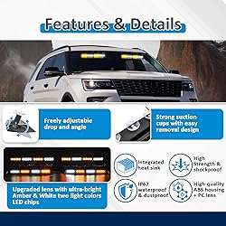 Fitment: Fit Hazard Warning, Law Enforcement, First Responder, emergency vehicles and tow trucks, construction vehicles, police, EMS, security, snowplow, postal workers, etc. Brilliant Illumination: Experience superior brightness thanks to the high-intensity LEDs. Outshining standard LED strobe lights, it guarantees maximum visibility on the road both day and night, even through tinted windows, ensuring your safety. Durability and Reliability: Built using premium materials that are IP67 waterproof, dustproof and shock-resistant, its aluminum housing guarantees efficient heat dissipation and extends the life of the strobe to 50,000 more hours. Easy-to-Use: Set it up effortlessly by simply plugging it into a 12V cigarette lighter and with the easy-to-use display controller, you can quickly toggle between 26 different flash patterns and customize flash directions while keeping track with ease. Versatile and Hassle-Free: The suction cup mounts for windscreen attachment make the installation process a breeze. get it up and running within connecting it to your vehicle's cigarette lighter and enjoy peace of mind.