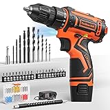Cordless Drill Set,12V Power Drill Driver 3/8" Keyless Chuck with 92 Acessories, Built-in LED Light, 25+1 Position, Electric Drill for Home DIY Projects (Orange)