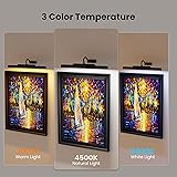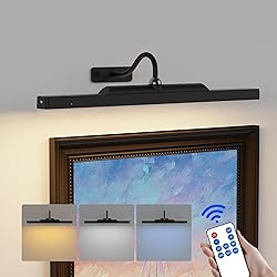 【Expansive Coverage for Large Paintings and Photo Wall】The 16inch long light bar delivers an impressive coverage area exceeding 65inchs, making it perfect for illuminating sizable art pieces, photography backdrops, and even painting walls. Whether you're working on a masterpiece, capturing professional-grade images, or need overhead lighting, this versatile lamp has you covered. 【Versatile Lighting】 Our battery operated wall sconce offers three adjustable color temperatures - warm yellow, natural, and cool white - allowing you to create the perfect lighting environment for your artwork or photo shoots. With a high 350 lumen output and 3 brightness levels (40%, 70%, 100%), you can precisely control the lighting to suit your creative and illuminating needs. 【Time Control&Simultaneous Control of Multiple Lights】Setting the light to auto turn OFF per your choosed time, no warry to turn OFF the light ;The remote control allows you to manage several lights at once, making it perfect for setting up comprehensive lighting arrangements in art studios, photography workspaces, or home offices. Coordinate your lighting setup with ease and enjoy the flexibility to fine-tune the illumination across your creative environment. 【Effortless Lighting Control】The lights for pictures on wall offers two intuitive control options to suit your preferences. Conveniently adjust the color temperature, brightness, and timer settings using the touch controls directly on the light body. Alternatively, take advantage of the included remote control for seamless, hands-free operation from across the room. 【Versatile Lighting for Diverse Applications】Our high-quality aluminum alloy art light is designed to illuminate a wide range of creative displays. Whether you need to light up wall artwork, dartboards, portraits, photos, or paintings, it seamlessly complements a variety of décor styles. Elevate the beauty of your pictures, photo frames, artworks, paintings, dartboards, galleries, posters, mirrors. 【Note Before Purchase】Material: Plastic light strip + metal hooks/backplate (not full metal); Charging: Charge for 4 hours until indicator turns from red to green; Installation: Wall drilling required (may damage surfaces), please review carefully before purchase if these affect your decision.