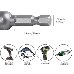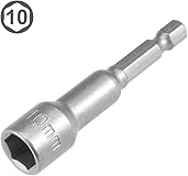 - Fixinus 5 Pieces Quick-Change Nut Driver Bits 10mm, 1/4" Hex Shank Magnetic Socket Metric Impact Drill Bit, 65mm Length Suitable for cordless screwdrivers, hexagon screws, nuts, hexagon bolts, etc. 【Product Feature】 1. 1/4" Shank fits most motorized corded or cordless drills. 2. Easy to install and disassemble, no easy to fall off during use. 3. Made of high quality chrome vanadium steel, sturdiness and durability, not easy to deform and not easy to rus. 4. Strong magnetic nut setter, one-hand operation. 【Product Specification】 Material: Chrome Vanadium Steel Socket Size: 10mm Shank: 6.35mm (1/4 inch) Overall Length: 65mm (2.56 inch) Finish: Sandblasting 【Package Content】 5 x 10mm Magnetic Nut Driver Bit, 65mm Length