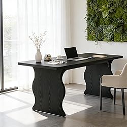 Extra-Large Workspace: Measuring 63" W x 31.5" D, this desk provides ample space for dual monitors, gaming setups, or collaborative work—perfect for home office, remote work, or student use. The 29.5" height ensures ergonomic comfort with generous legroom Premium MDF Construction: Our desk is built with heavy-duty MDF board, offering superior stability for computers, printers, and office supplies. It is ideal for gamers, professionals, and busy households Multi-Functional Design: Whether you need a gaming desk, study desk, or executive workstation, its minimalist style fits any space. Use it in home offices, bedrooms, dorm rooms, or coworking spaces—versatility meets functionality Sleek & Modern Aesthetic: The rich black finish and clean lines elevate your décor. Its smooth silhouette and stylish form make it an eye-catching piece that enhances any room's décor Quick Assembly & Low Maintenance: Includes step-by-step instructions and all tools for a 30-minute setup. The smooth surface wipes clean effortlessly—no stains, no fuss