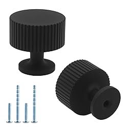 【Solid Material】: These cabinet knobs are made of metal alloy, ensure longevity and durability. They plated by matte black finish, bring you a new home improvement experience. 【Unique design】: The knobs are cylindrical vertical stripe design. Ideal for various furniture pieces such as cabinets, drawers, cupboards, wardrobes, or dressers etc. 【Measurement & Installation】: Diameter: 1.1 inch (28mm), Height: 1.1 inch(28mm). Accompanied by two sizes of screws, can be used for cabinet thicknesses ranging from 1/2 inch to 1-1/2 inch. 【What's in the Package】: Each package includes 20 cabinet knobs, 20 standard 1 inch screws, and 20 breakaway 1.8 inch screws. Each handle is individually wrapped and packaged to protect the beautiful color from scratches. 【Customer Support】: Abtopia is committed to providing our customers with premium quality cabinet hardware. If you have any questions or issues, please contact us. We're committed to your satisfaction and will address your concerns promptly.