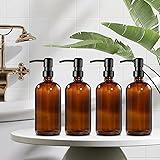 GMISUN Amber Glass Soap Dispenser, 4 Pack Bathroom Hand Soap Dispensers with Stainless Steel Pump, 17 Fl Oz Kitchen Hand and Dish Soap Dispenser Set, Modern Vintage Liquid Brown Soap Dispensers Bottle