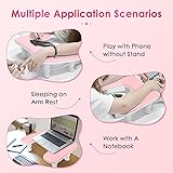 Upgraded Adjustable U-shaped Nail Arm Rest: Our pink nail tech arm rest features an advanced adjustable height design with 3 levels of free height adjustment, ranging from 125mm to 150mm for the front bracket and from 80-105mm for the rear bracket; Simply rotate the bottom bracket to adjust the height of the nail, ergonomic design reduces the fatigue of manicurists and customers for long periods of time Built-in Thick Non-slip Pad: Are you still worried about your nail rest stand shaking? Our pink u-shaped hand pillow is embedded with a thickened non-slip pad, which eliminates the need to stick and never fall off, ensuring strong stability on any flat surface, that won't scratch your expensive nail table and allow clients to enjoy and relax throughout the manicure process Large Space and Space Saving: While ensuring the size can accommodate most nail lamps on the market, our manicure stand hand rest is optimized to dimensions of 17.5*11.2*1.96in; This design avoids taking up too much of your desktop space, making it perfect for professional nail technicians working in nail salons and beginners practicing nail art at home Detachable and No Installation Required: Our manicure arm cushion does not require installation tools, just gently push the bottom bracket into the slot to complete the installation and start your manicure. When not in use or carried out, simply remove the bottom bracket, making it very easy to store and carry out More Comfortable and Durable: Our adjustable nail armrest cushion are filled with high resilience sponge, which is ideal for long manicure use; At the same time, the leather material can prevent sweat and glue oil from seeping out, making the arm rest cushion more durable and easy to clean, perfect for as a gift to friends, family or lovers on important occasions