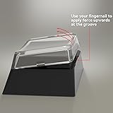 【Double-Layer】The keycap consists of a top cover and bottom buttons. 【Adaptability】Suitable for most Cherry MX switches. 【Usability】Very easy to use, simple to operate, just use your fingernails to open the top cover. 【Instantly Custom】Simply replace the sticker or paper at any time to change the keycap content. 【Practicability】 This keycap can immediately create custom layouts for your application.